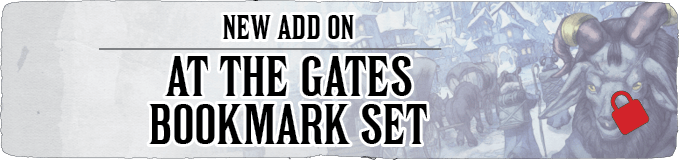 At $36,000 in Funding - AT THE GATES Bookmark Set - Need something cool to mark your place? We'll have a set of six At The Gates cardstock bookmarks offered as an Add On to any hardcover reward tier for +$15.